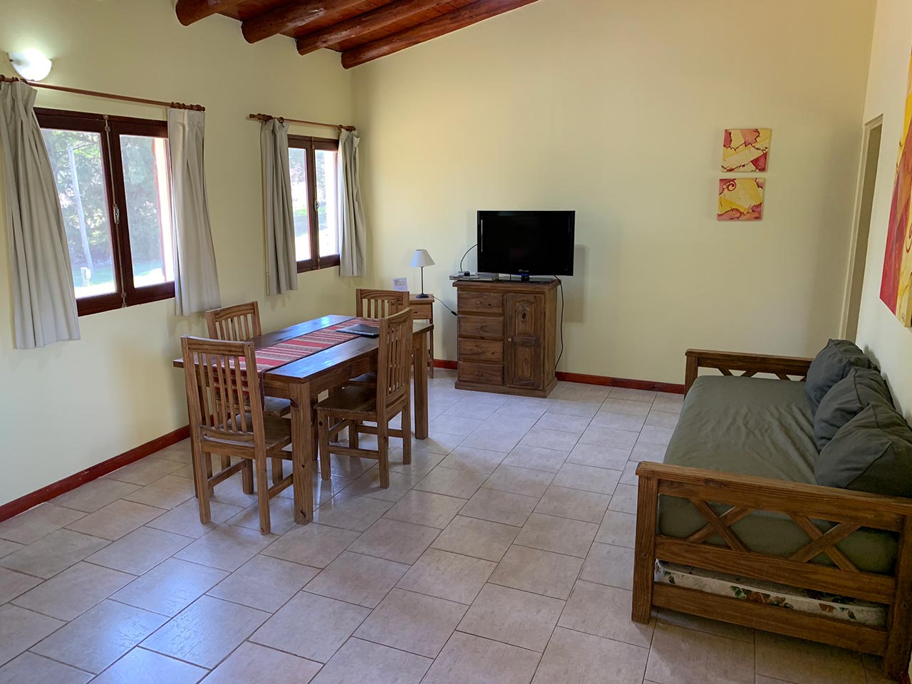 Las Cabañas Súper Confort en una sola planta, pensando en hacerlas mucho mas confortables que las estándar cuentan con un dormitorio con sommier matrimonial y sábanas de percal, LCD 32, un baño completo con hidromasaje y toallas mullidas, con toallero eléctrico para calentar las toallas, la cocina totalmente equipada con horno eléctrico y anafe, heladera con freezer, microondas, cafetera, tostadora, pava eléctrica y un living comedor donde hay un diván que se transforma en dos camitas individuales. LCD de 32" en el living con cable. Todos los ambientes con aire acondicionado frío/calor. Caja de seguridad. Cada cabaña además cuenta con un deck con parrilla y estacionamiento cubierto.
