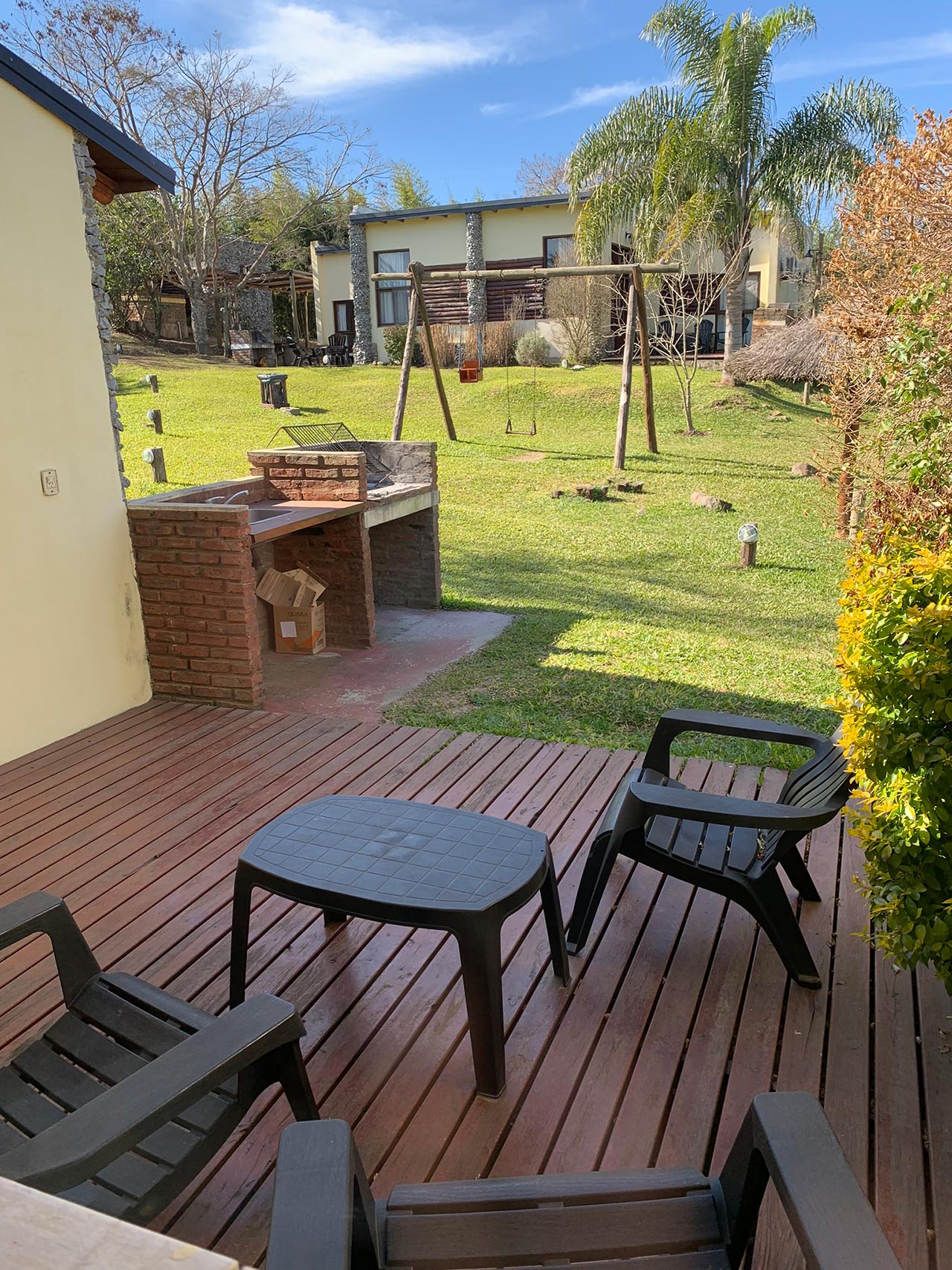 Las Cabañas Súper Confort en una sola planta, pensando en hacerlas mucho mas confortables que las estándar cuentan con un dormitorio con sommier matrimonial y sábanas de percal, LCD 32, un baño completo con hidromasaje y toallas mullidas, con toallero eléctrico para calentar las toallas, la cocina totalmente equipada con horno eléctrico y anafe, heladera con freezer, microondas, cafetera, tostadora, pava eléctrica y un living comedor donde hay un diván que se transforma en dos camitas individuales. LCD de 32" en el living con cable. Todos los ambientes con aire acondicionado frío/calor. Caja de seguridad. Cada cabaña además cuenta con un deck con parrilla y estacionamiento cubierto.