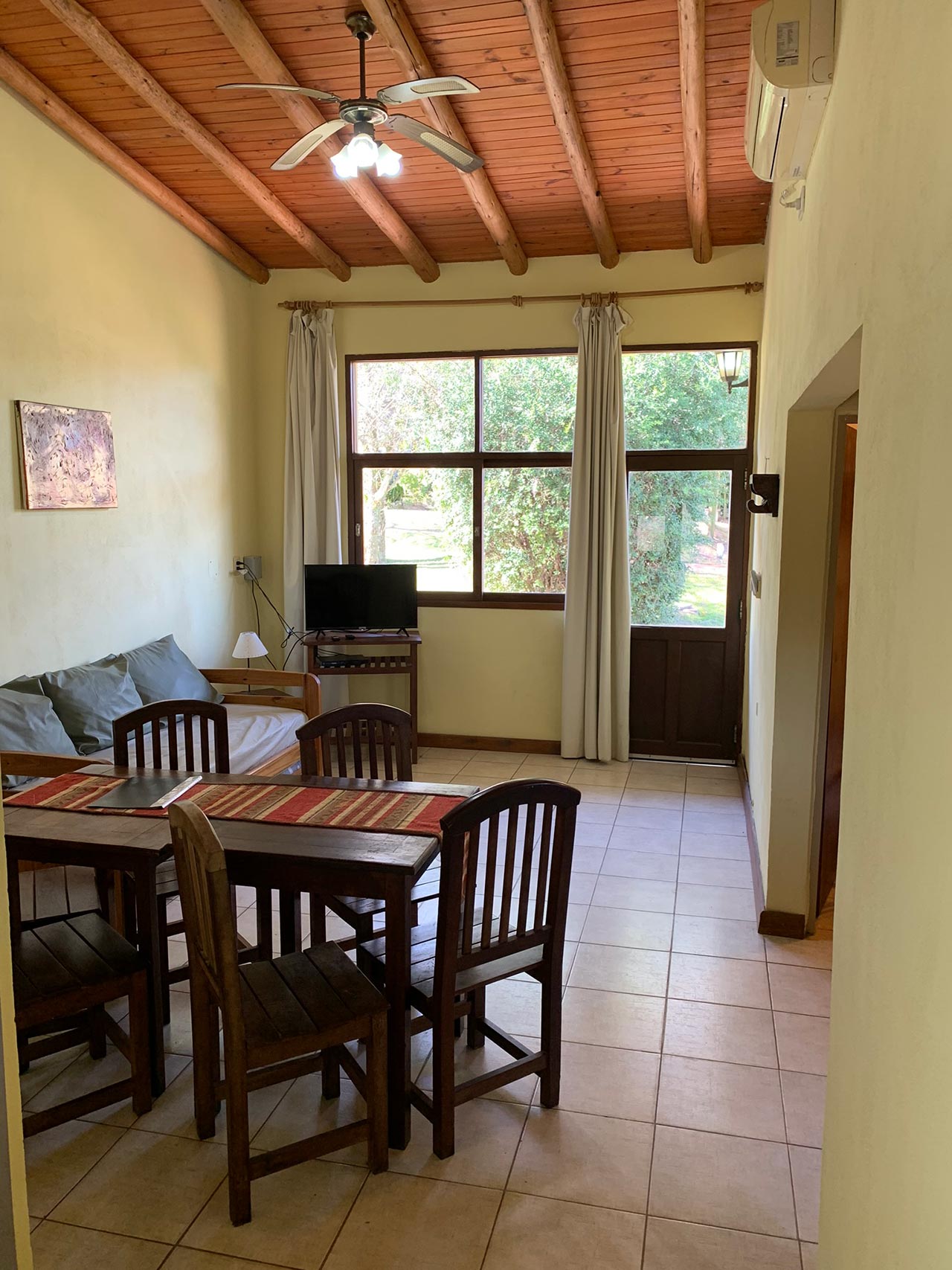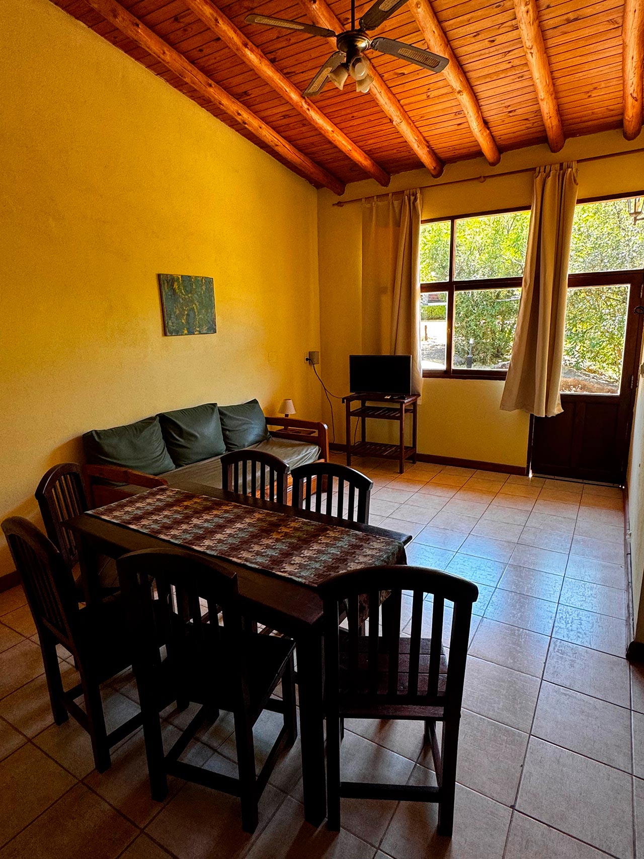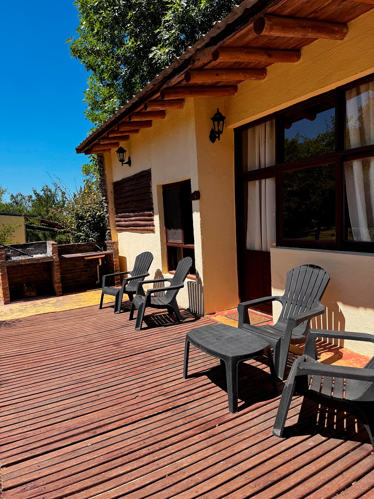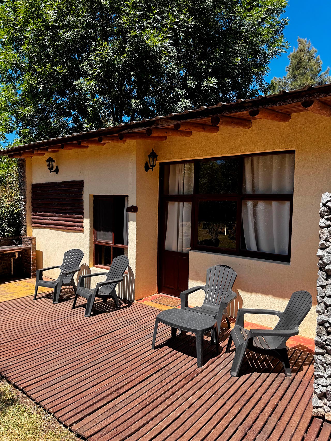 Las Cabañas Súper Confort en una sola planta, pensando en hacerlas mucho mas confortables con mas de 60 m2, tiene dos dormitorios con sommier y sábanas de percal, un baño completo con hidromasaje y toallas mullidas, con toallero eléctrico para calentar las toallas, secador de pelo y un baño completo con ducha, la cocina totalmente equipada con horno, heladera, microondas, cafetera, tostadora, pava eléctrica y un amplio living comedor donde hay un diván que se transforma en dos camitas individuales. LCD HD de 32" en el living con cable y otra TV de 29" en el dormitorio principal con cable. Todos los ambientes con aire acondicionado frío/calor. Caja de seguridad. Cada cabaña además cuenta con un deck con parrilla y estacionamiento propio.
