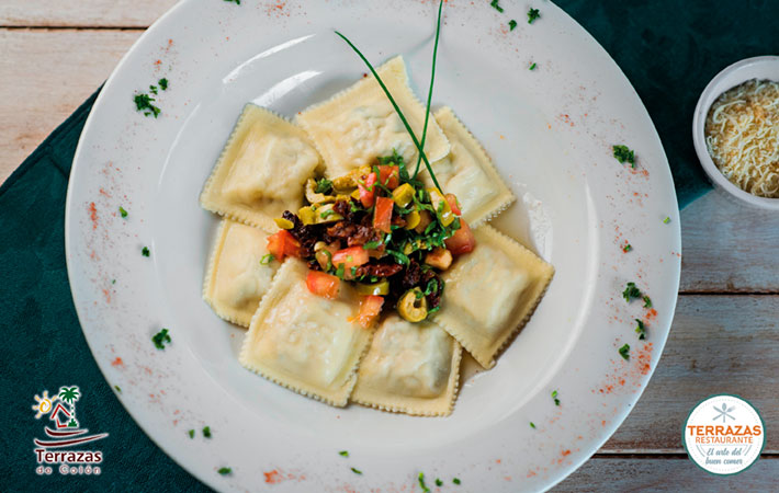 exclusivos raviolones de dorado con puerro y ralladura de limón